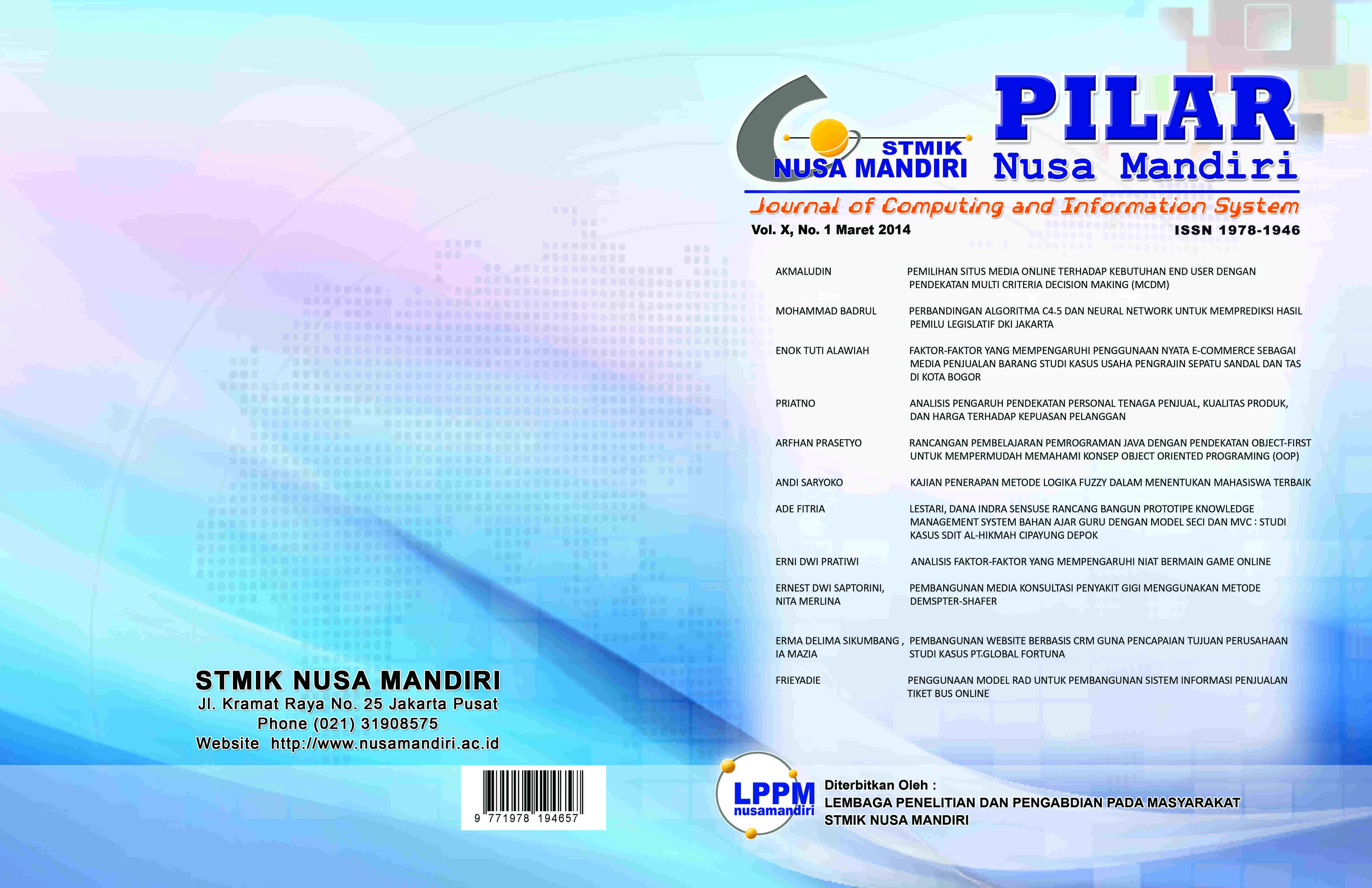 Vol. 10 No. 1 (2014): Pilar Nusa Mandiri : Journal of Computing and Information System Periode Maret 2014