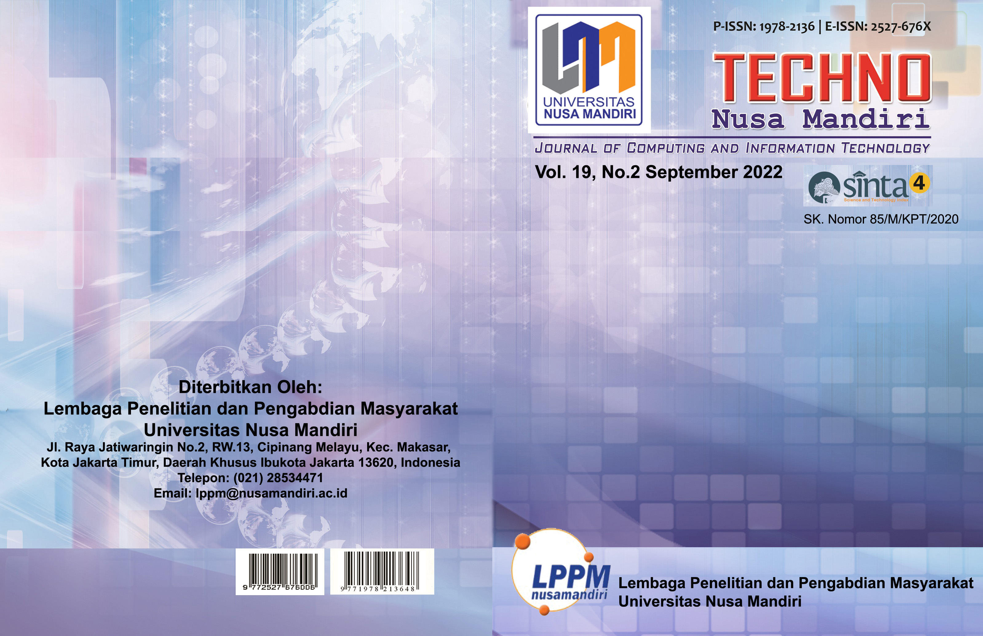 Vol. 19 No. 2 (2022): Techno Nusa Mandiri : Journal of Computing and Information Technology Period of September 2022